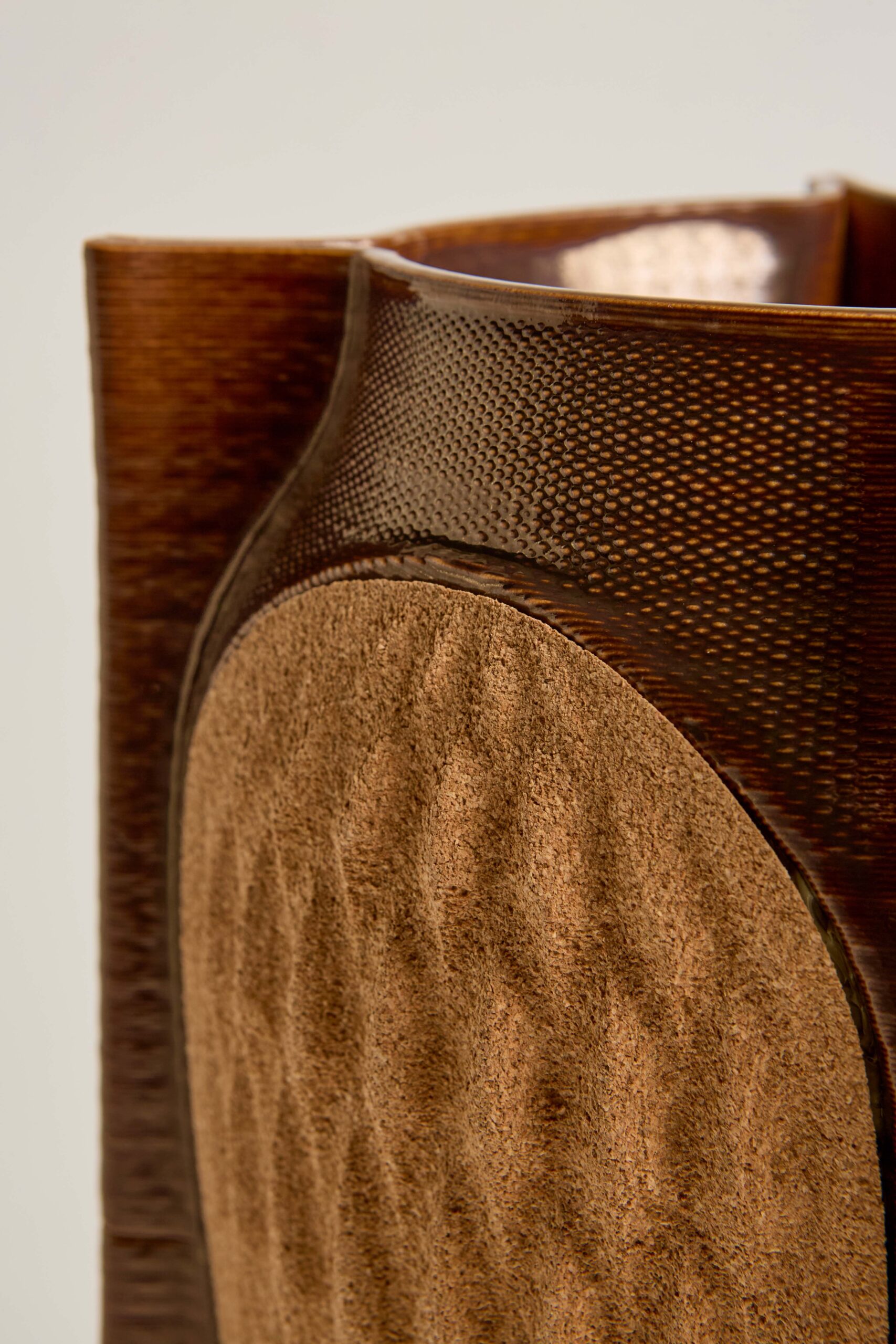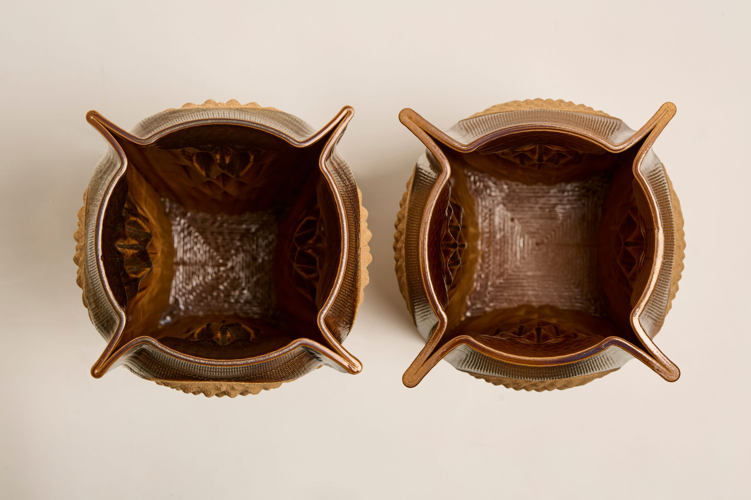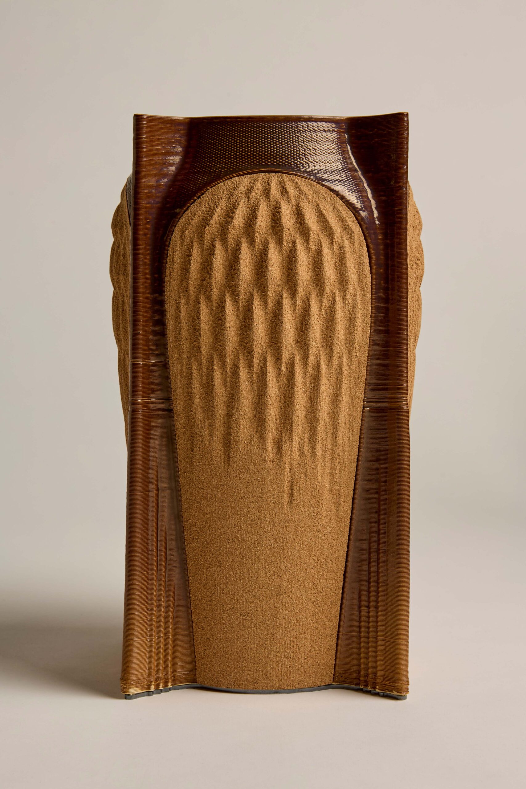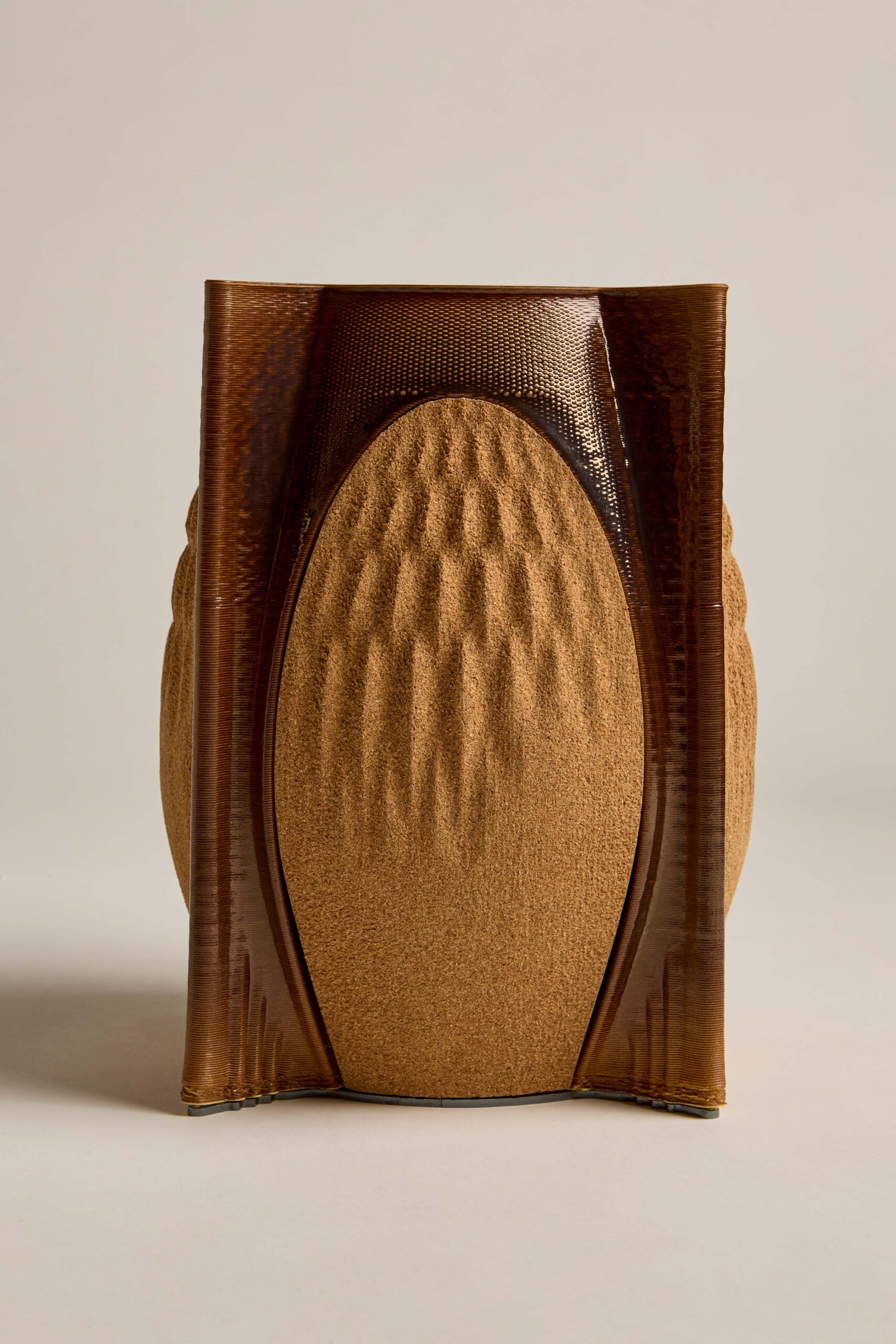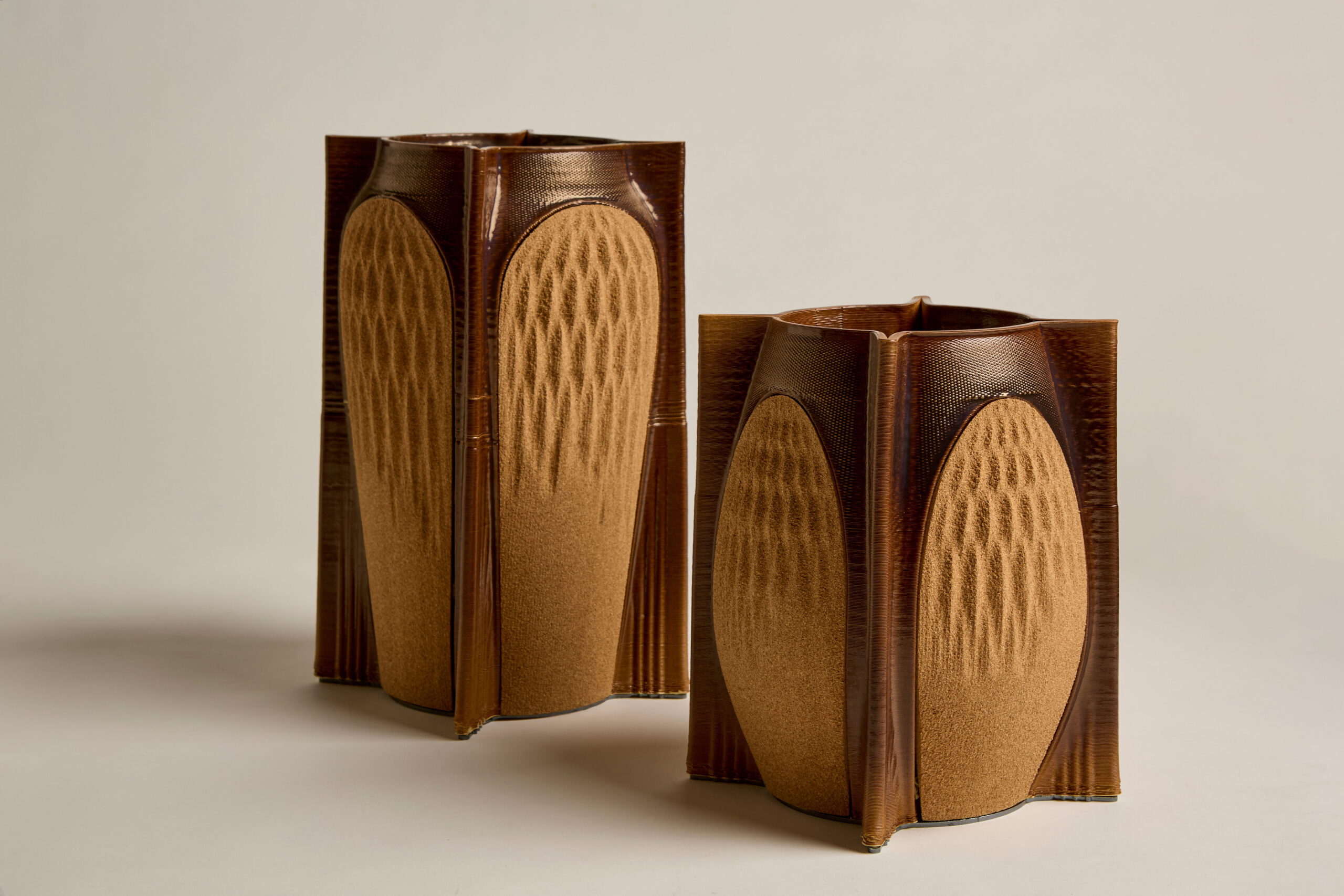 VAS is a pair of vases that explores the act of containing as an essential gesture: to protect and to hold. Designed by Carmelo Zappulla for External Reference, the project reinterprets Mediterranean archetypes through a contemporary lens, where function and meaning coexist. The dialogue between a warm, porous exterior made from recycled cork and a precise 3D-printed ceramic interior, with its process left visible, transforms waste into value and imperfection into language.