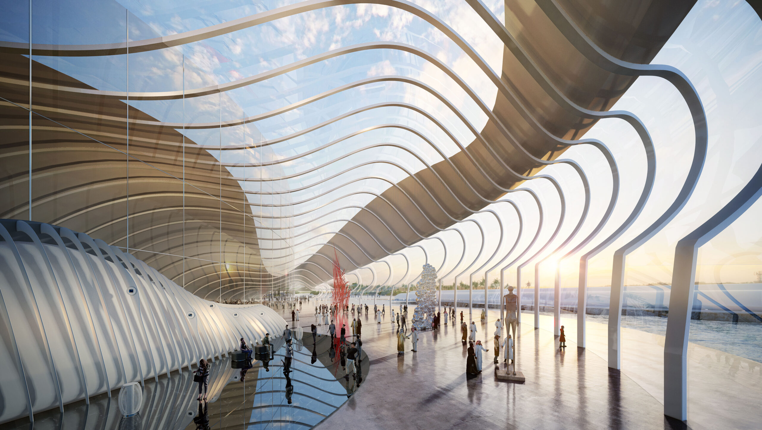 Set along Jeddah’s tranquil waterfront, Fashion Island embodies the harmony of permanence and motion, with a silhouette inspired by dunes and waves, reflecting the region’s heritage and fashion’s dynamic nature.